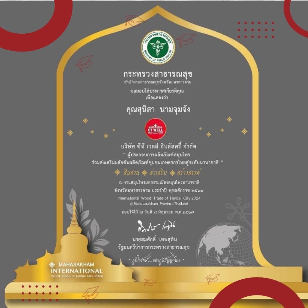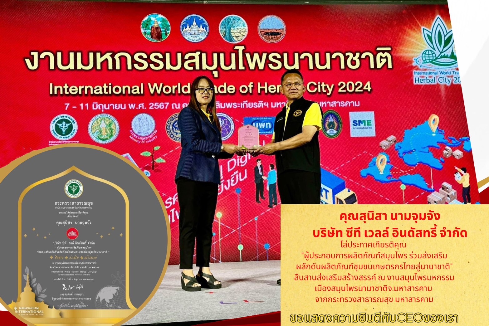 คุณสุนิสา นามจุมจัง ผู้บริหารบริษัท ซีที เวลล์ อินดัสทรี้ จำกัด เข้ารับโล่ประกาศเกียรติคุณ